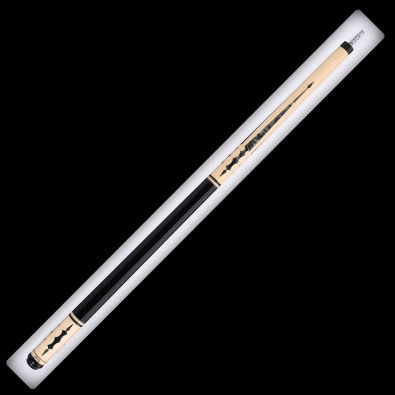 The Jacoby Mag2 Black cue is constructed of high-grade birdseye maple. The beautiful inlay work can be seen on the forearm as well as the butt sleeve and is made from Black Pearlescent Acrylic. The ring work on either side of the handle is stacked white and black phenolic with a black phenolic joint and butt cap. All Jacoby Mag Series Cues come with a 13mm Standard Maple Shaft.