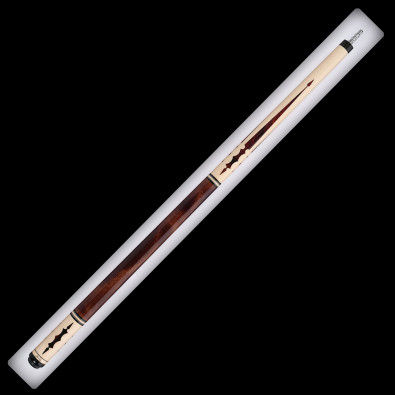 The Jacoby Mag2 Brown cue is constructed of high-grade birdseye maple. The beautiful inlay work can be seen on the forearm as well as the butt sleeve and is made from Brown Pearlescent Acrylic. The ring work on either side of the handle is stacked white and black phenolic with a black phenolic joint and butt cap. All Jacoby Mag Series Cues come with a 13mm Standard Maple Shaft.