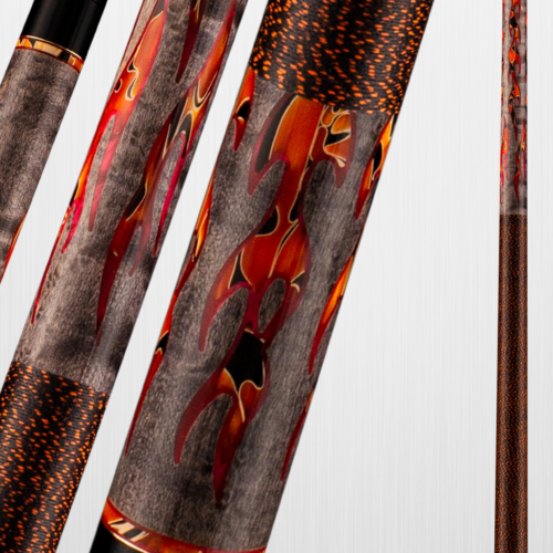 Smoke Stain | Select Birdseye Maple | Double Pressed Irish Linen Wrap | Raging Fury and Red Premium Peal Inlays | Raging Fury and Red Premium Pearl and Brass Rings | Viking Quick Release Joint | Tiger Everest Tip | VIKORE Performance Shaft